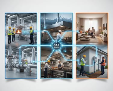 Redes de Alta/Media Presión, Estaciones ERM, Sistemas de Combustión, Optimización de Consumo, Asesoría Técnica.