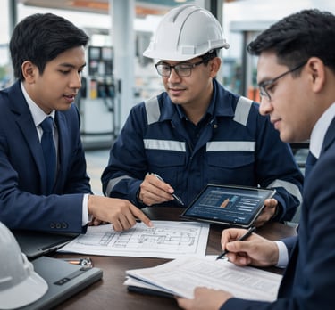 En ECO ENERGIX, ofrecemos un servicio integral que abarca todas las fases de su proyecto, desde la concepción inicial hasta el mantenimiento post-operativo. Nuestra profunda experiencia y conocimiento de la normativa vigente (Osinergmin, Municipalidades, Defensa Civil) nos posiciona como su socio más confiable para el desarrollo, construcción y optimización de estaciones de servicio, gasocentros y plantas de abastecimiento."