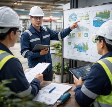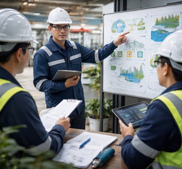 Diseñamos y ejecutamos programas de capacitación personalizados en temas de gestión ambiental, seguridad en el trabajo y normativa aplicable a su sector, elevando la conciencia y las capacidades de su equipo para un manejo ambiental proactivo y responsable.