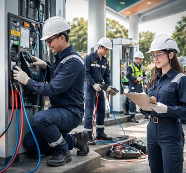 Ofrecemos programas de mantenimiento preventivo y correctivo para toda la infraestructura de su estación de servicio: tanques, surtidores, tuberías, bombas y sistemas de control. Realizamos pruebas de hermeticidad, calibración de equipos y reparaciones urgentes para minimizar interrupciones y cumplir con las inspecciones técnicas de Osinergmin.
