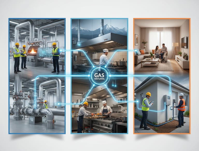 Ofrecemos ingeniería, diseño e instalación de redes de gas natural de alta y media presión para plantas industriales, hoteles, centros comerciales y grandes edificios. Incluye el montaje de estaciones de regulación y medición (ERM), líneas de distribución internas, sistemas de combustión y asesoría para la optimización del consumo y la eficiencia energética.