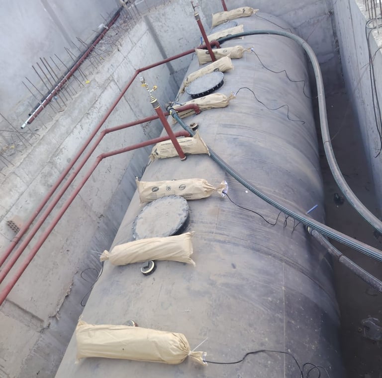 Construcción y montaje de tanques de almacenamiento (superficiales y subterráneos), instalación de surtidores, islas, techos y tiendas de conveniencia. Implementamos sistemas de tuberías, redes eléctricas, sistemas contra incendios y drenaje. Nuestra mano de obra calificada y supervisión constante aseguran la calidad y seguridad en cada etapa.